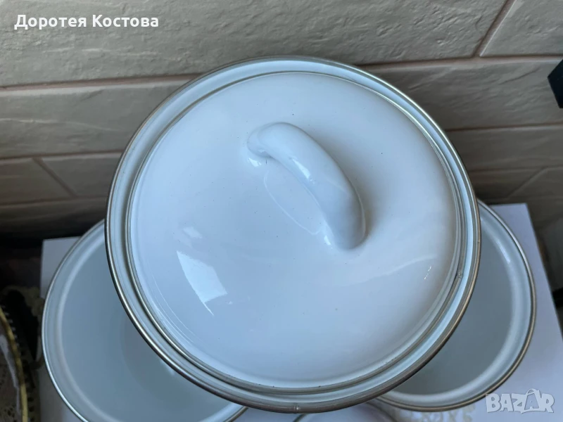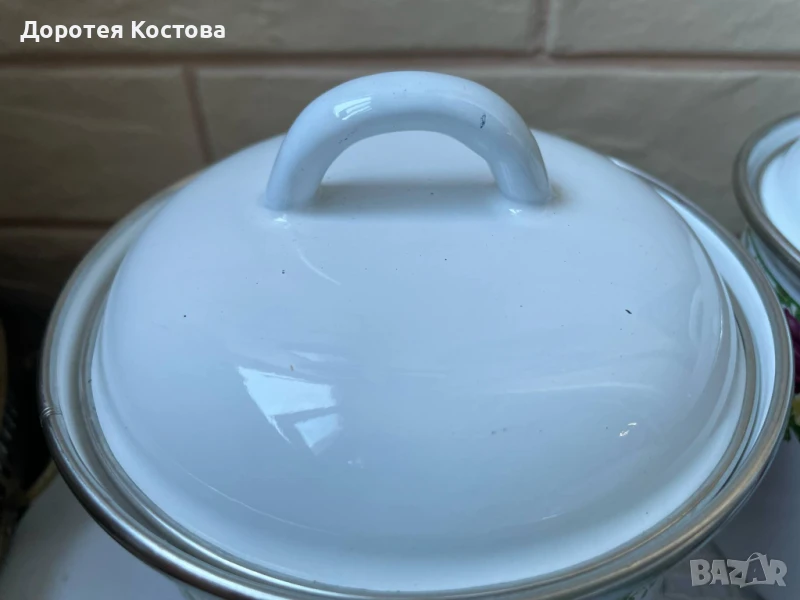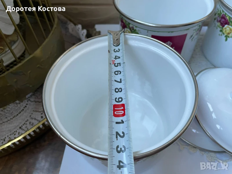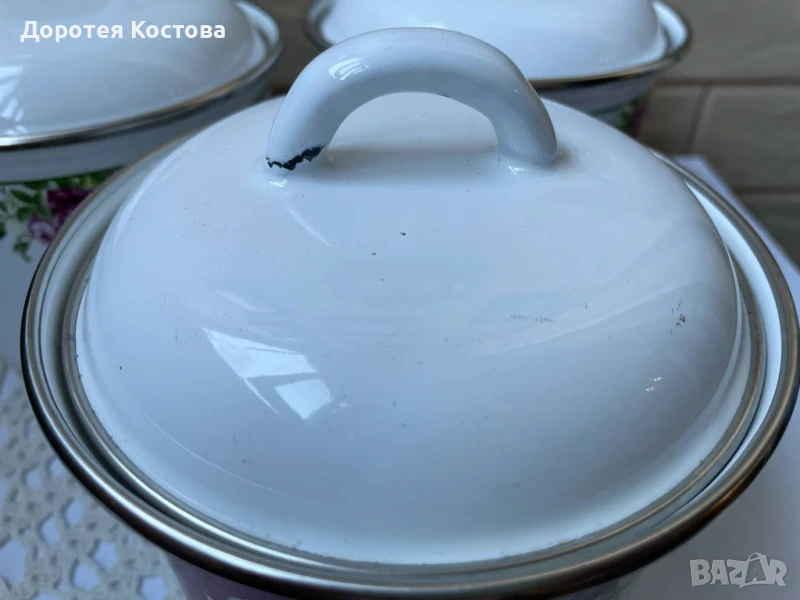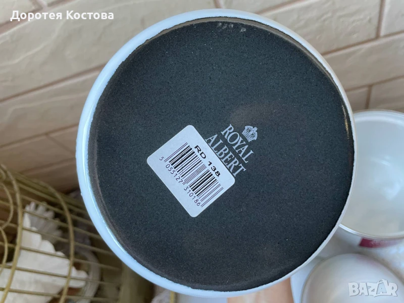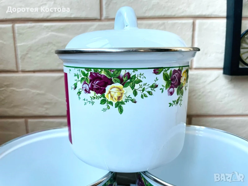 ROYAL ALBERT красиви метални тенджерки / съд за бисквити, дребни сладки, билки и др./ от Англия, с капак, размерите са на снимките. По капаците има дребни несъвършенства / малки точици /, по единия капак има малки забележки / последните снимки /. Прекрасни, качествени и рядко срещани, с маркировки и всестранна шарка. Налични са 3 бр, цена за брой - 70 лв.
