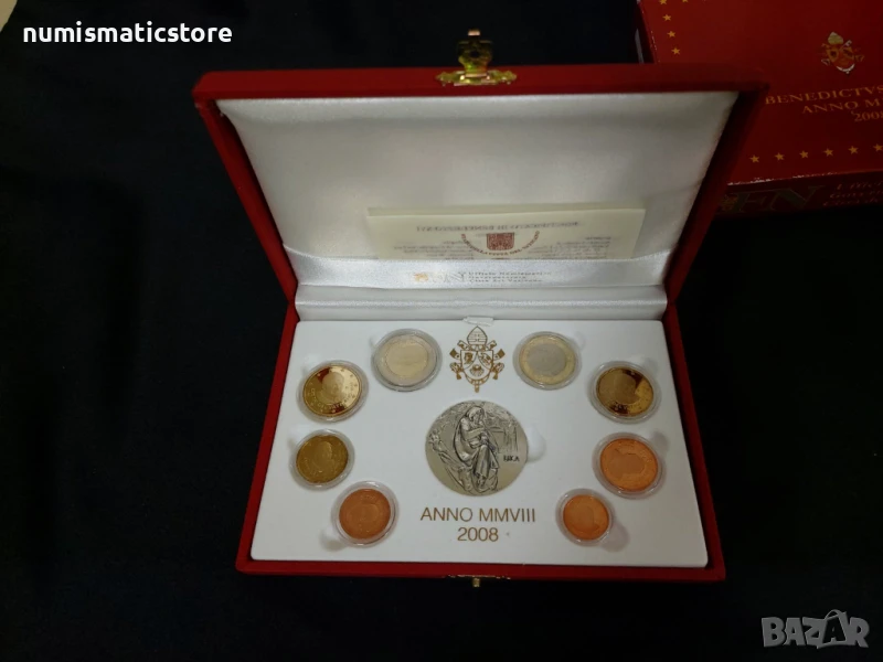 Ватикана PROOF 2008 г. - комплектен сет от 1 цент до 2 евро + възпоменателен сребърен медал → Обява 50812610