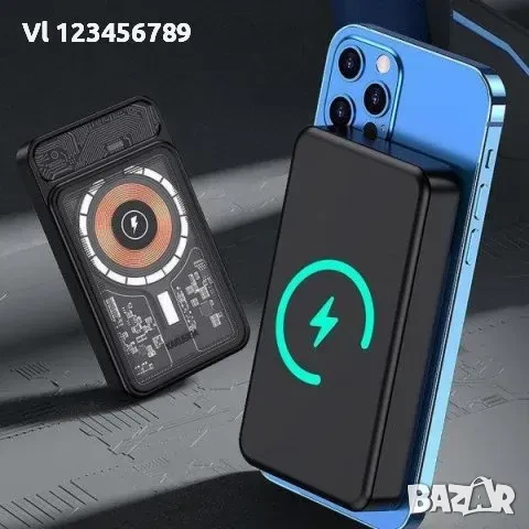 Powerbank с отличителен дизайн и капацитет 10000 mAh, двупосочен USB-C порт и поддръжка на безжично зареждане, както и съвместимост с технологията MagSafe!