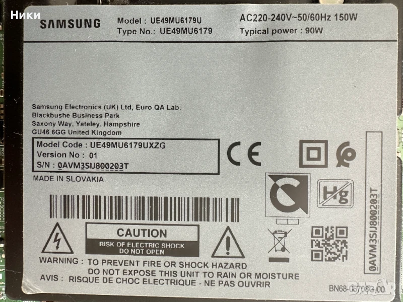Wi-Fi + BT модул WCM730Q от работещ телевизор SAMSUNG UE49MU6179U със счупен дисплей, модела на дисплея е CY-GM049HGLV1H. Модула е работеща свалена от работещ телевизор. Изпращам по ЕКОНТ с опция тест и преглед!!! С оглед и проба на това, че модулите нямат гаранция, след прегледа, теста и заплащането не приемам