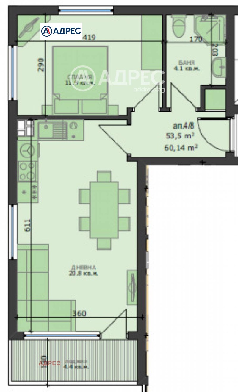 Предствяме ви просторен, слънчев и функционален апартамент. Жилището се състои от дневна с кухненска част 21 кв.м., спалня 11 кв.м., баня/тоалет и веранда. С опция за покупка на паркомясто!