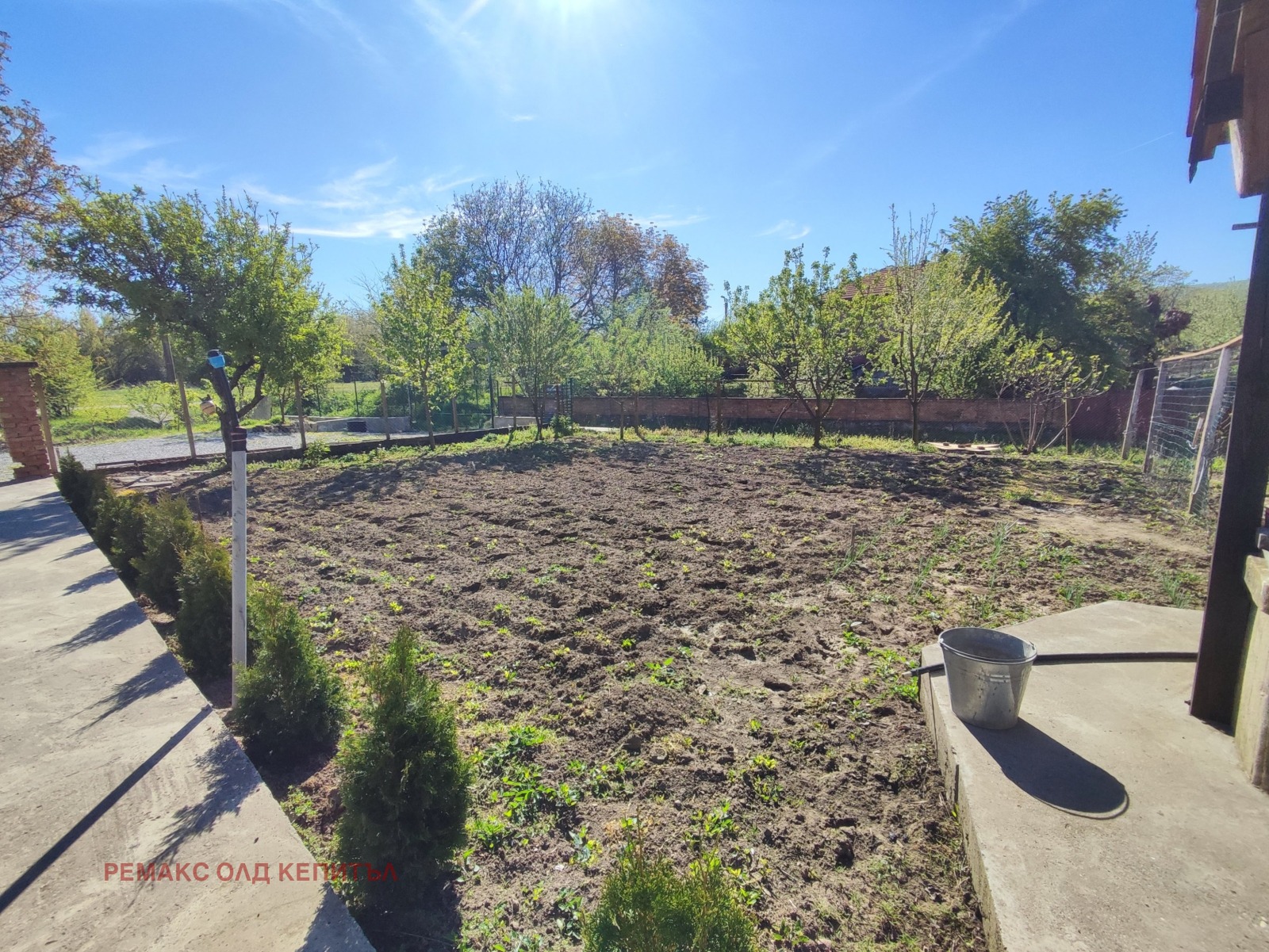 Дворното място е с площ от 1290 кв.м., равно и подържано. Разполага с кладенец.