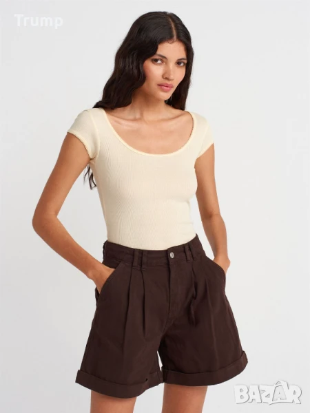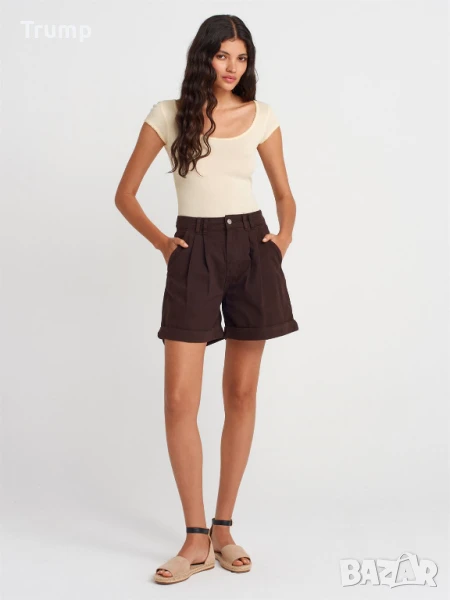 Високо качество Дънкови шорти с двойно плисиране и подгъв - кафяви → Обява 50816414