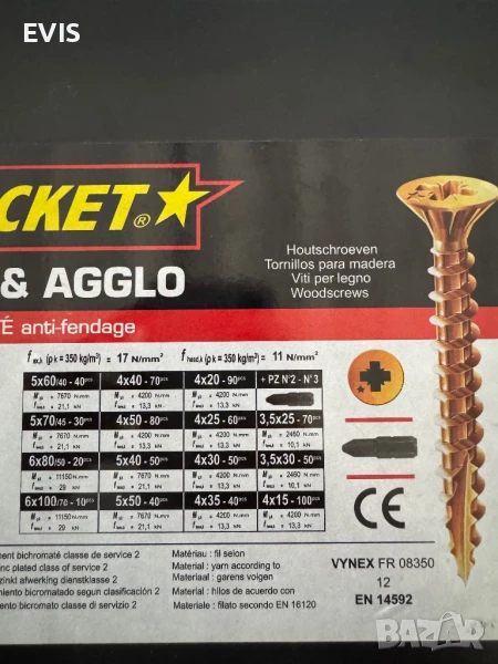 Продавам комплект с метална кутия, органайзер висококачествени винтове за дърво и агломерат Rocket Bois & Agglo – общо 800 броя. Винтовете са с връх тип 17, който осигурява лесно и прецизно пробиване без цепене на материала.