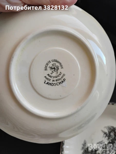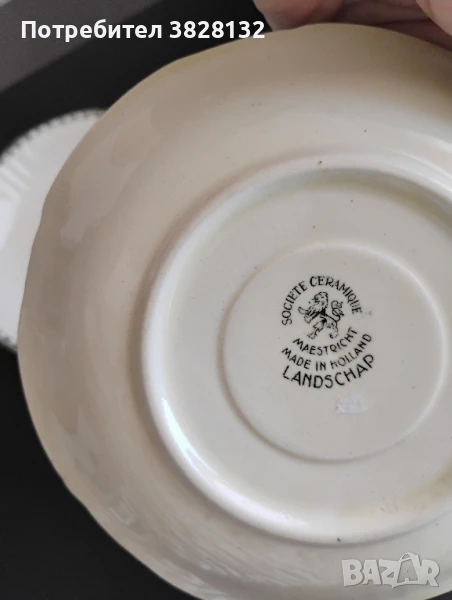 Две винтидж десертни чинии, готови да заживеят отново и да радват своя притежател, в отлично състояние, запазени, на марката "Société Céramique Maastricht", холандска фабрика за керамика, която е била активна от 1863 до 1958 г. "Société Céramique" е фабрика за керамика от Маастрихт, Нидерландия. Фабриката е работила самостоятелно от 1863 до 1958 г. Цената е 15лв./бр., а за двете чинийки ще е 25лв.