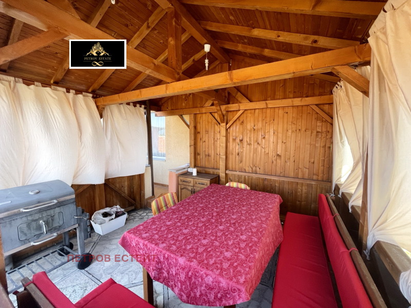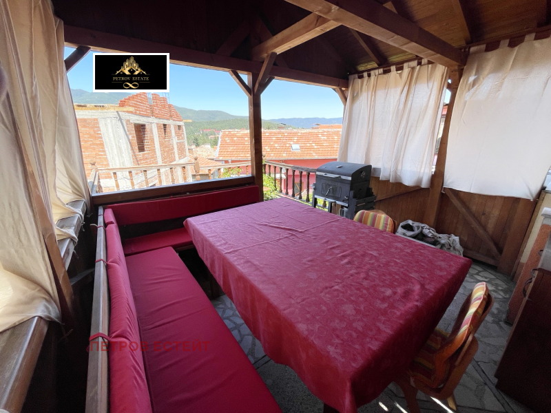 Предлагаме обзаведена двуетажна къща с двор и гараж в широк център на Велинград. Намира се близо до гора, училище, парк, кафе, минерални извори и други. На първи жилищен етаж има входно антре, дневна с кухненски бокс и тераса, баня и тоалетна, спалня, хол и голяма тераса, с беседка барбекю. Втори етаж разполага с кухненски бокс, всекидневна с тераса, две спални и баня с тоалетна. Къщата разполага още с таван без преградни стени с възможност за обособяване като допълнителен етаж за живеене, а на ниво сутерен има складови сервизни помещение. Къщата е санирана, като отоплението е с парно на дърва. Разполага още със СОТ, соларни панели и 200-литров бойлер, който е свързан към парното и панелите. Сменена е вътрешната и външната дограма. Допълнително в дворното място има дърварник и склад, както и изградена мивка. За повече информация и огледи се обадете на телефон: +359 877 49 89 87.