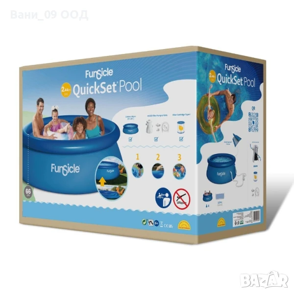Надуваемият Басейн с размери 244 x 66 см, филтърна помпа и вместимост 2300 литра, е идеалното място за отдих в горещите дни за цялото семейство. Той предлага отлично забавление за вас, вашите деца и приятелите ви.Изработен е от изключително здрава и устойчива на пробиване трислойна полиестерна мрежа и плътен PVC материал.