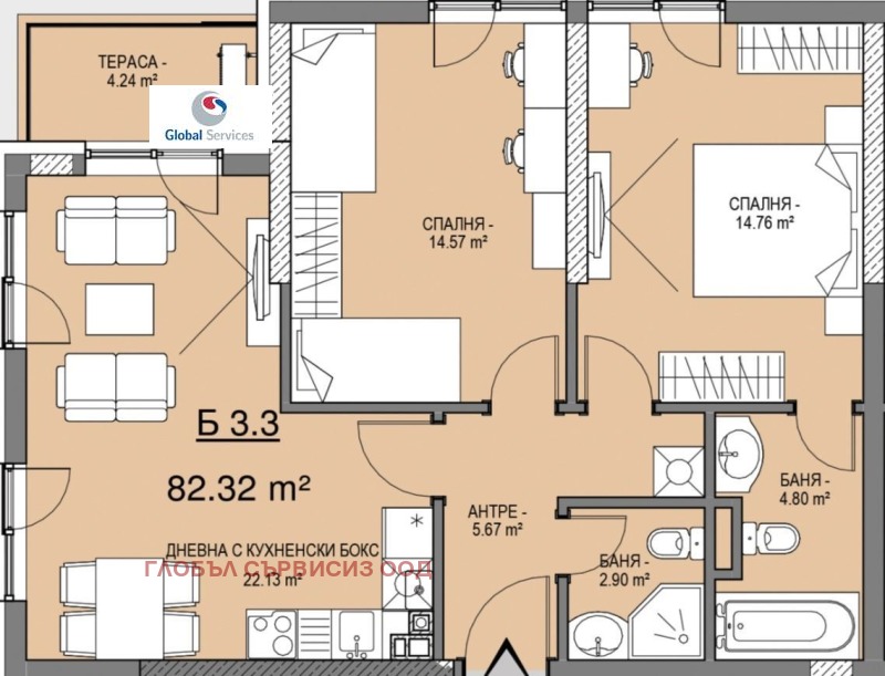 Номер на обявата в агенцията 15950. АКТ 16. Жилището се състои от хол с трапезария и кухня, две спални, две бани и тераса. Възможност за закупуване на подземно парко място. За повече информация и огледи тел.0885706434.