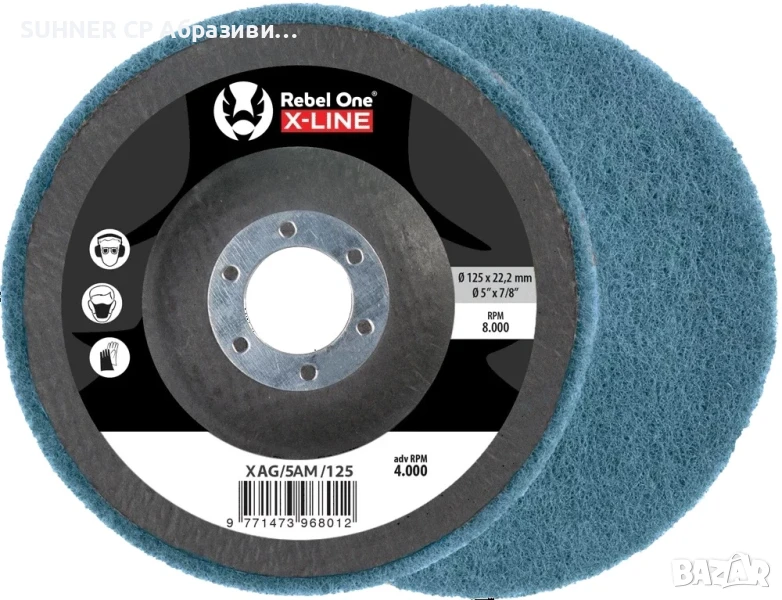Rebel One X-Line е изработен от 3D-мрежа от найлонови влакна, импрегнирани със смола, към която са добавени керамични абразивни зърна. След това се компресира в плочи със специфична плътност. Унифицираните абразиви са най-новото поколение 3D абразиви. Прикрепени към основа от стъклени влакна, те могат да се използват с всякакъв тип ъглошлайф с променлива скорост;