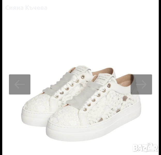 Дамските бели сникърси с бродерия и сатенени връзки на марката STOKTON. Стилни и удобни за ежедневието. Нови не са носени, продавам ги защото са ми малки. Цената на която са закупени от магазини Pepina е 510лв, продавам ги за 400лв.