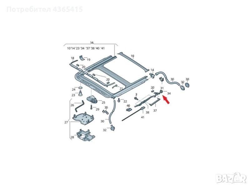 Ремонтен комплект за шини за люк (шибедах) на VW New Beetle (1998-2010)