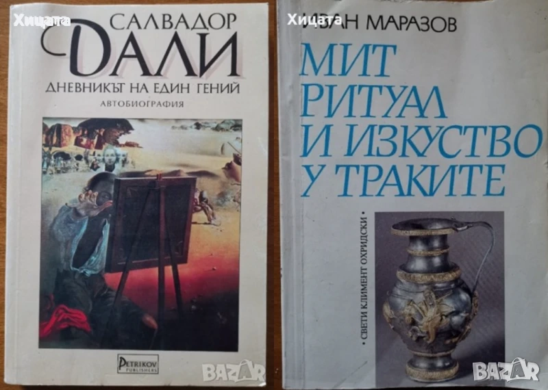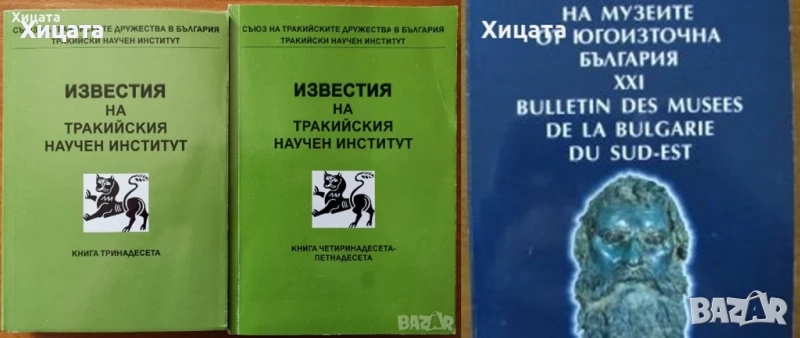Наръчник по архитектурно строителство,Д.Баждаров,Л.Попдонев и др.Техника,1971г.764стр.Забележки по корицата. - 80лв. Тракийски паметници.Том І: Мегалитите в Тракия. Тракийски паметници.Том 2: Тракийски светилища,Без обложка. Тракийски паметници.Том 3: Мегалитите в Тракия.Част 2 Тракия Понтика.Обща цена - 600лв. Първи международен симпозиум''Севтополис" : Надгробните могили в Югоизточна Европа,Казанлък, 4-8 юни 1993г.Изд.Пик Велико Търново,1994г.328стр. - 80лв. Мит,ритуал и изкуство у траките,Иван Маразов,УИ "Св. Климент Охридски"1992г.496стр. - 70лв Дневникът на един гений,Салвадор Дали,Петриков,1994г.288стр.Отлична! - 60лв Известия на Тракийския научен институт.Книга 13,ТНИ,2014г.424стр. - 30лв. Известия на Тракийския научен институт.Книга 14-15,ТНИ,2016г.416стр. - 40лв. Известия на музеите от Югоизточна България XXI / Bulletin des musees de la Bulgarie du Sud - Еst ,На Български и Френски език,Бургас 2004г.-2005г.296стр. - 45лв Списание Археология. Година 7 Книга 4,1965г.Археологически институт и музей при БАН,86стр.- 30лв Ръководство по археология.Част втора,Тодор Овчаров,ВУ „Кирил и Методий" - Исторически факултет,1986г.246стр.Изключително запазена! - 70лв Icônes et manuscrits bulgares,Emmy Barouh, Collectif, Ralitsa Lozanova, Boris Danaïlov , Europalia 2002г.116 p.FORMAT 24CM X 30CM - 110лв Icons from Bulgaria,Kostadinka Paskaleva,Sofia Press,224стр.(на английски език,леко наранено ъгълче) - 140лв. София между две столетия,Георги Тахов,изд.Септември,1986г.120стр. - 45лв.