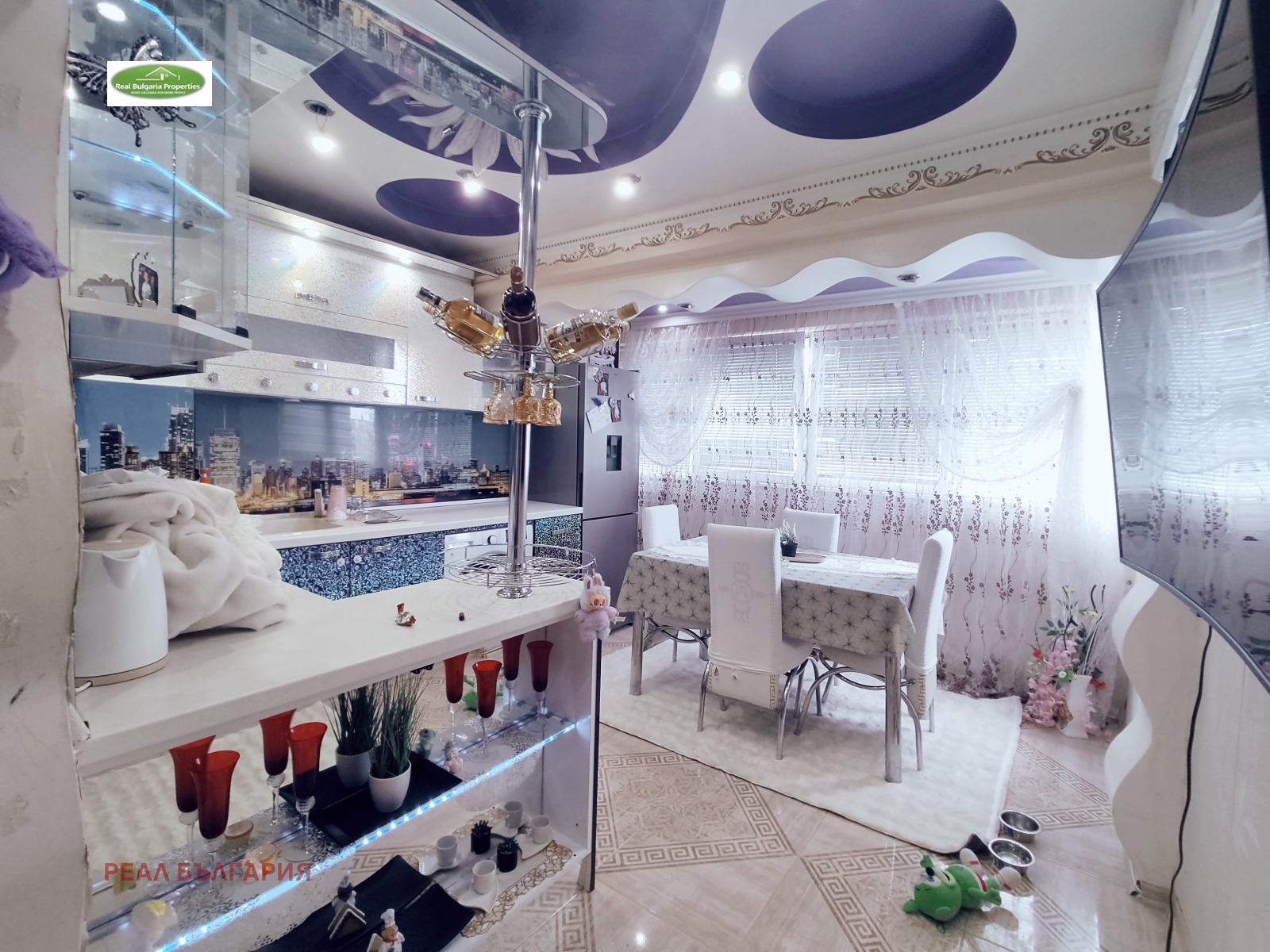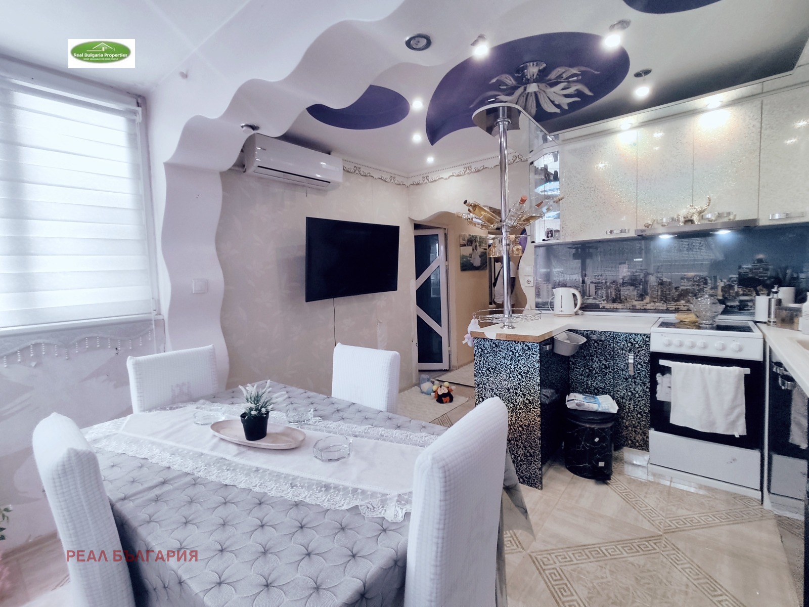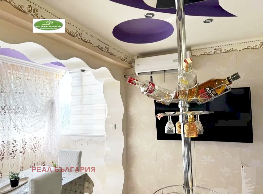 Апартаментът е с множество подобрения: изолация, нова ВиК и ел. инсталации, висок клас ПВЦ дограма с отлична шумо и топлоизолация, декоративни мазилки, вградено осветление, масивна входна врата, стилни вътрешни интериорни врати, подова настилка: ламинат и теракот. Отоплението и охлаждането са посредством висок клас инверторни климатици. Жилището е обзаведено и оборудвано с всички необходими мебели и ел.уреди. Прилежащо избено помещение.