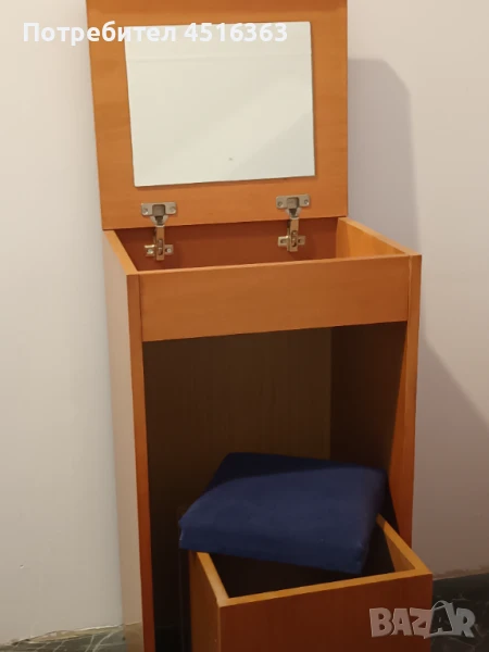 Също и висока тоалетка с огледало и шкаф. Табуретката може да се ползва за ракла.