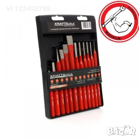 Комплект пробои, секачи, центри KRAFT& DELE KD10111 съдържа 12 броя пробои, секачи, центри с високо качество. Професионален комплект е създаден за домашни и сервизни потребители. Голям комплект с много различни размери.