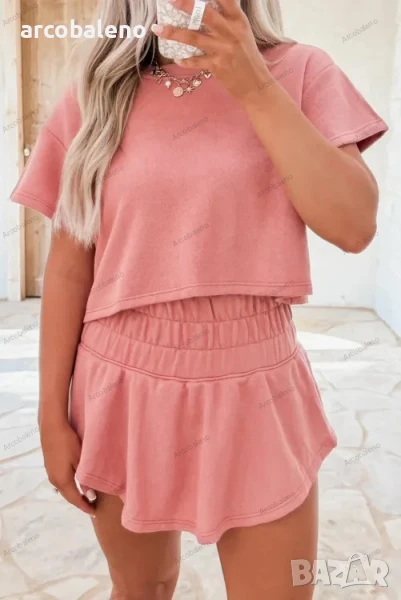Дамски ежедневен комплект от две части от пола-къси панталони и къса тениска