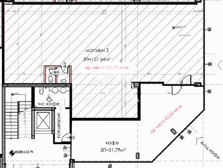 Магазин 1, със застроена площ - 135.81 кв.м, с общи части - 161.77 кв.м, площ с идеални части от дворното място - 178.06 кв.м