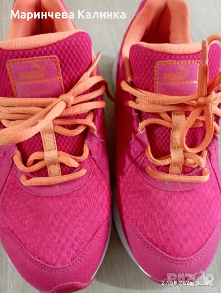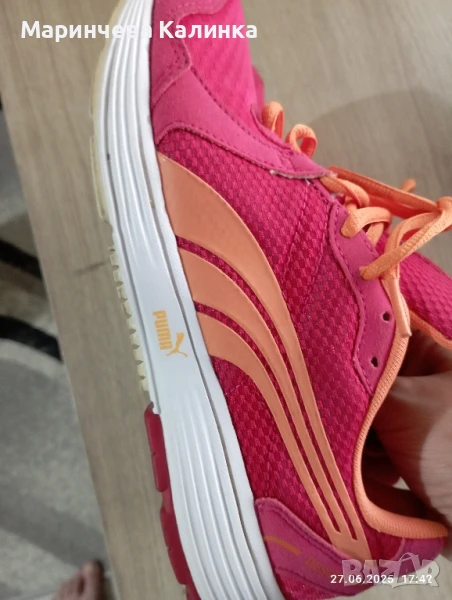 Дамски,Червени маратонки PUMA,леки, удобни, обувани два пъти! Размер на ходилото 25см, на подметката 26.5см.За по-вече на лични Изгодно!