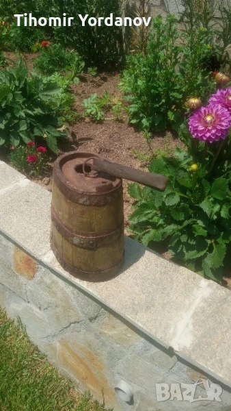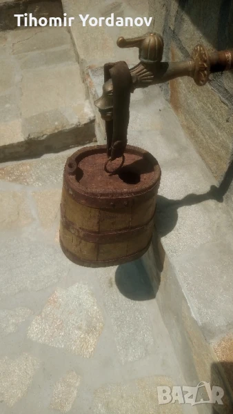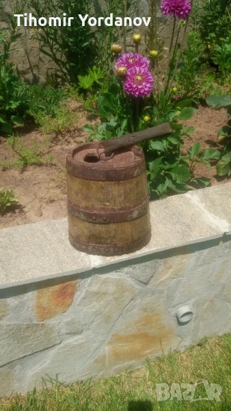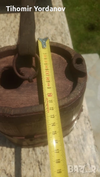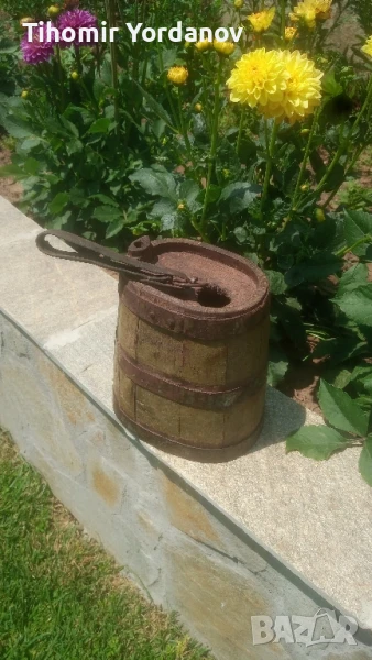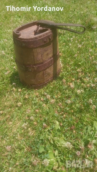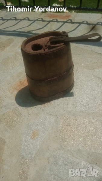Стар дървен павур за вода,бъкел, здрав ,в реално,автентично състояние .За украса и декорация.Размери от снимките.