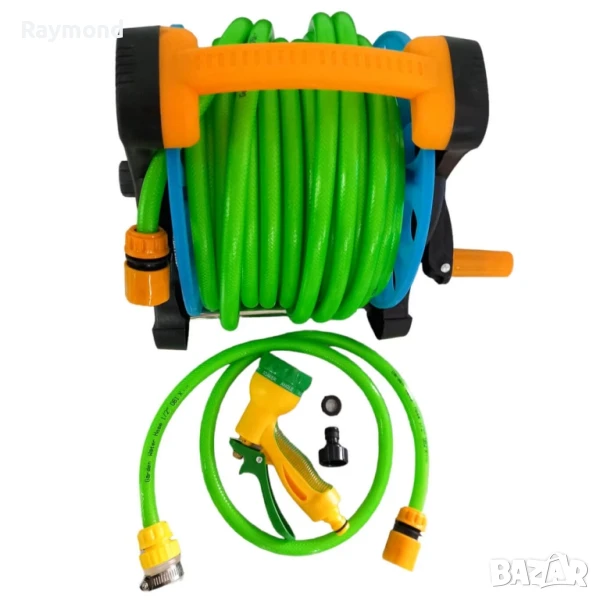 Преносима макара с маркуч 25 м – градинска, с дюза с 7 функции и накрайници