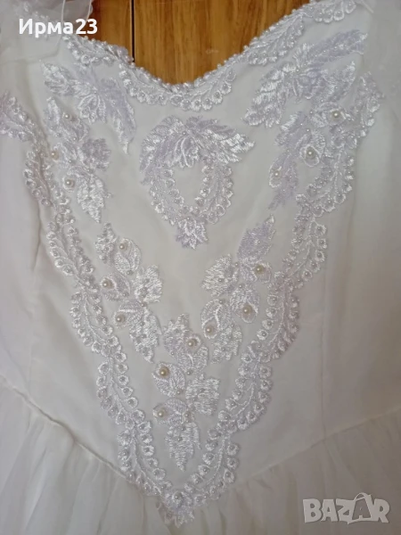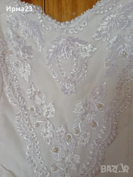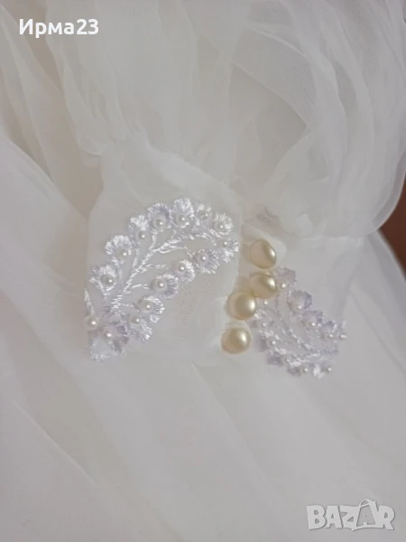 Бяла ефирна рокля с разкошна бродерия и перли