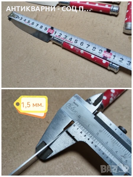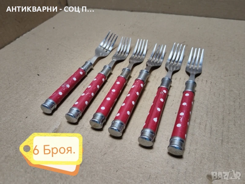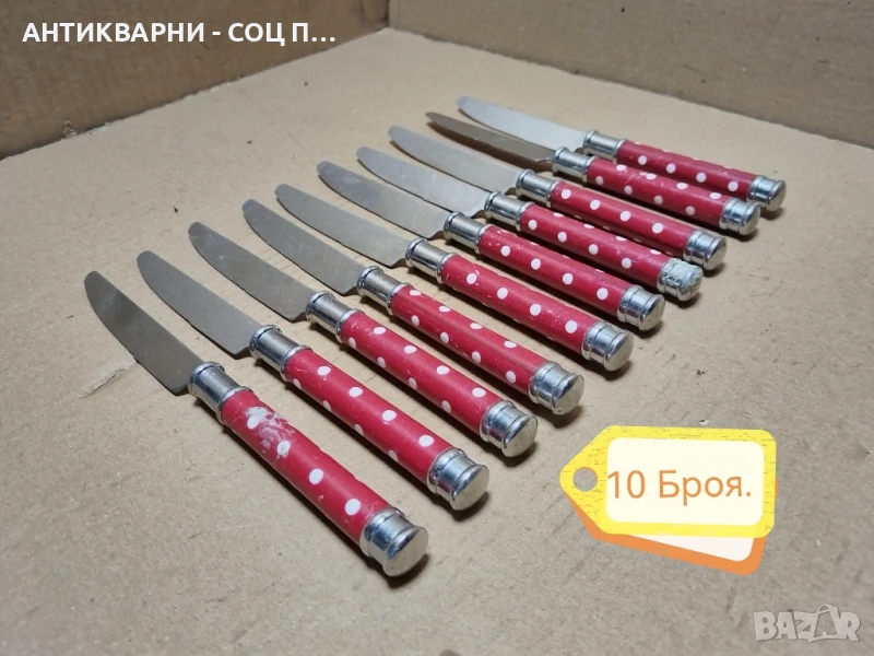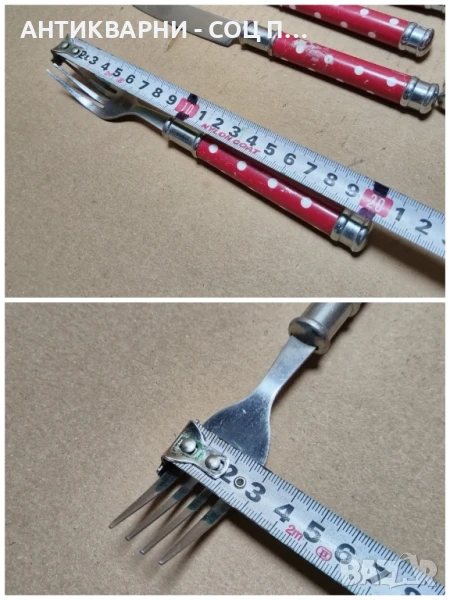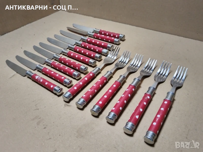 - Комплекта е в перфектно състояние за годините си, както ножовете, така и вилиците са в перфектно състояние за годините си, напълно здрави и прекрасни за употреба на битов кът и много други, ножовете са 10 броя, вилиците са 6 броя, всичко е снимано подробно, размерите са на снимките!