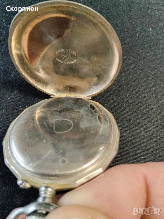 Швейцарски джобен часовник посребрени капаци - Argentan - Цилиндър - РЯДЪК → Обява 50823822