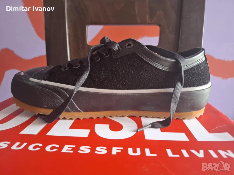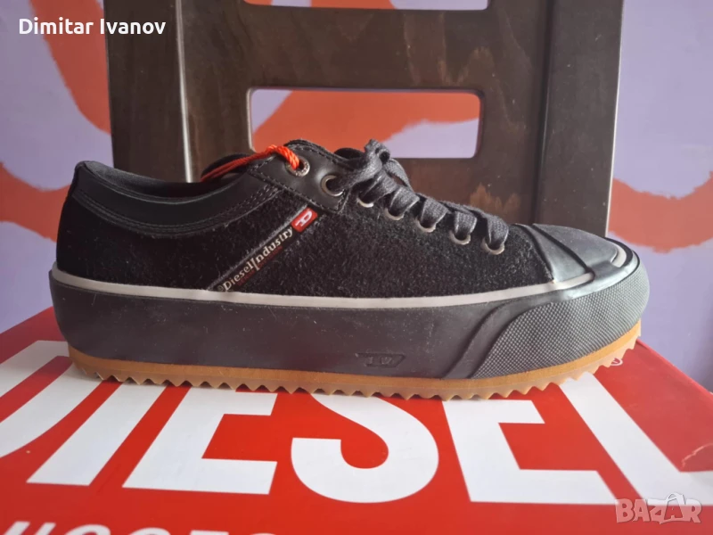 Diesel S-Principia low 41 100% оригинални купувани от Англия. Тези маратонки, отдават почит на марка Diesel. Дебелата, многослойна подметка е детайлизирана с междинен слой в контрастен цвят и гумирана капачка на върха. Метални отвори за връзки с марка допълват обувката.
