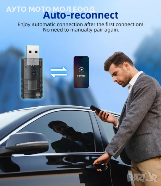 Мини WiFi Адаптер за безжична връзка с CarPlay / AndroidAuto.