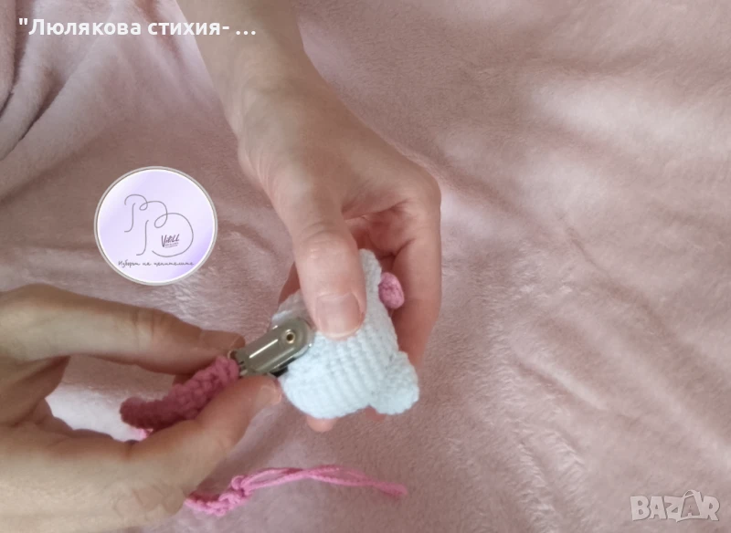 2.щипка/клипс- метален елемент, "облечен" с прежда и монтиран по специален начин към главата.