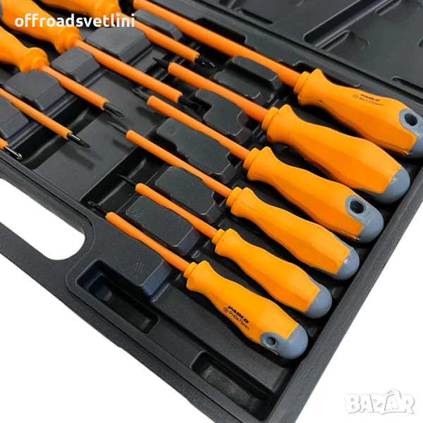 комплект отвертки, изолирани отвертки, електрически отвертки, професионален комплект, отвертки за електротехници, кръстати отвертки, плоски отвертки, отвертки с изолация, отвертки 1000V, PH отвертки, PZ отвертки, отвертки за сервиз, комплект инструменти