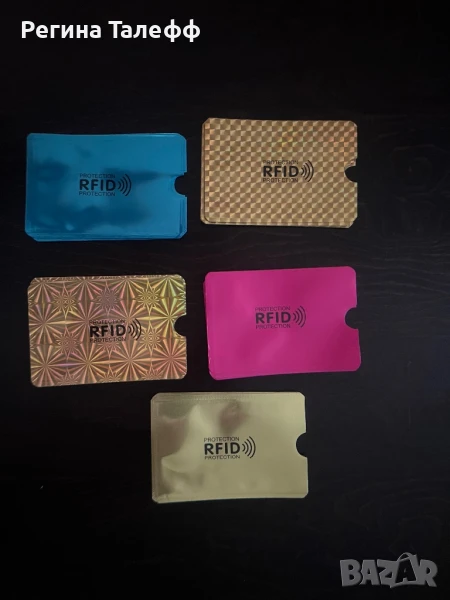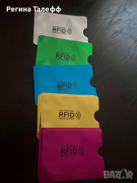 Нови RFID протектори за защита на вашата безконтактна банкова (кредитна/дебитна) карта. Предпазва при опит за безконтактно изтегляне на пари. Водоустойчив. За налични разцветки пишете. Цена - 2 лв. за брой.