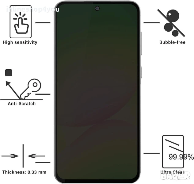 - Privacy - AntiSpy - не позволява видимост към дисплея под определен ъгъл на гледане