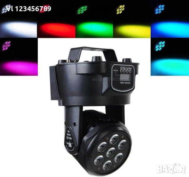 Диско прожектор 7 led mini moving head лед с въртяща се глава