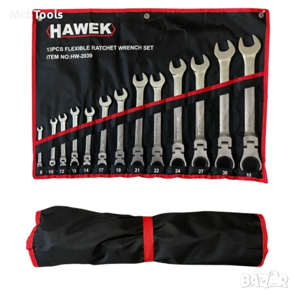 Комплект звездогаечни тресчотни ключове с чупещо рамо 8 – 32 мм 13 части Hawek