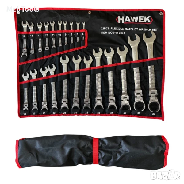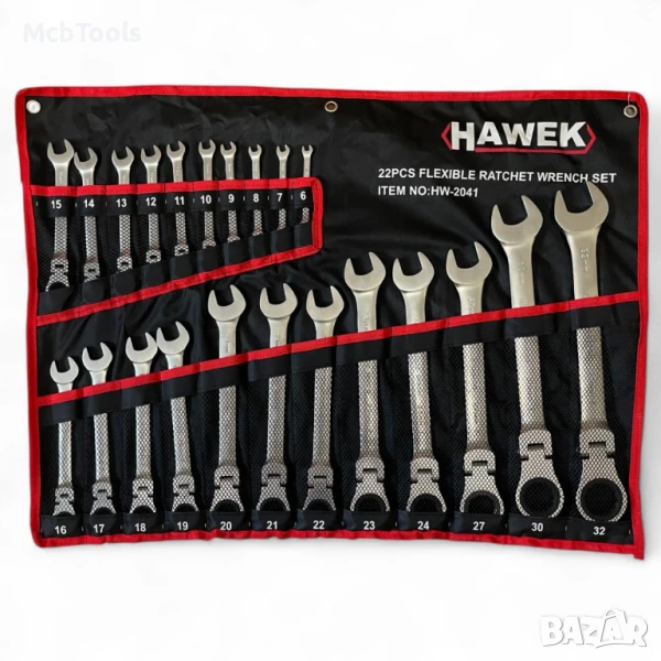 Комплект звездогаечни тресчотни ключове с чупещо рамо 22 части 6 – 32 мм Hawek
