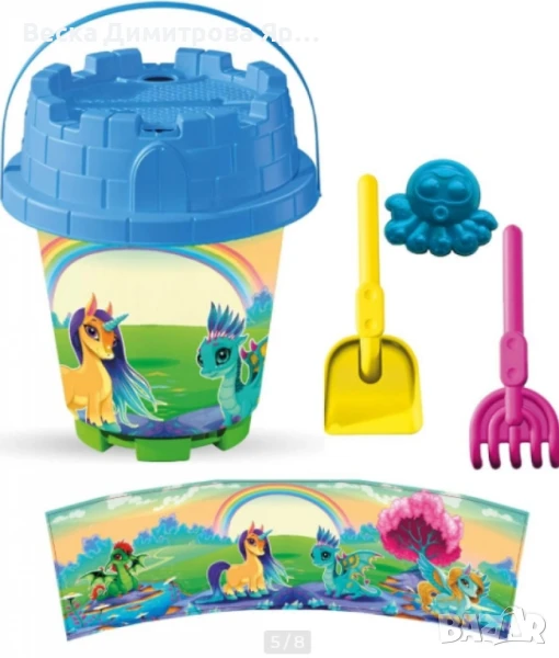Тип продукт: Кофички за пясък;Този комплект с голяма кофа за пясък е перфектният избор за весела и творческа игра на плажа или в пясъчника. Подходящ за момичета и момчета над 3 години, комплектът съдържа всичко необходимо за забавление край морето – удобно събрано в практична мрежеста опаковка.Кофите са декорирани с атрактивни картинки и се предлагат в 8 тематични варианта:Принцеси, Барби с корона, Пони, Коли с очи, Рибки, Кола, Животни, Monster джип;Материал: Нетоксична, устойчива пластмаса;Размери на кофата: 19 х 23 см;Размери на опаковката: 19 х 35 см;1 бр. голяма кофа с цветна картинка;1 бр. сито;1 бр. лопатка;1 бр. гребло.