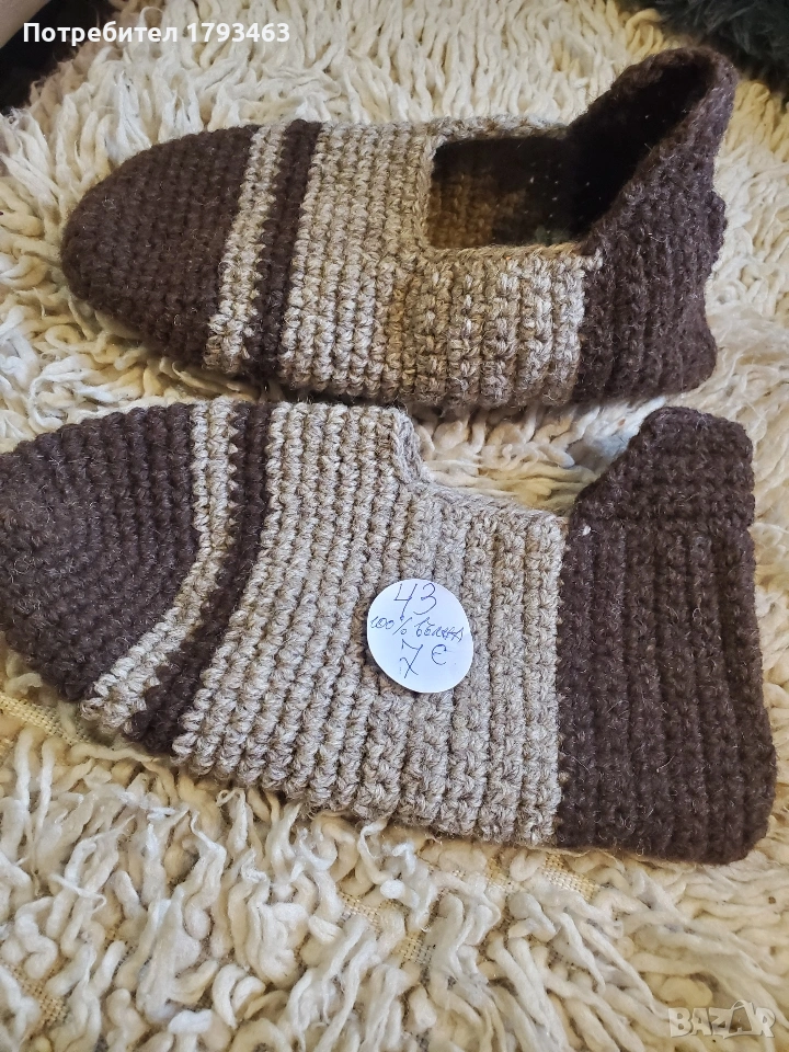 Ръчно плетени мъжки терлици от вълна' размер 43 → Обява 50827014