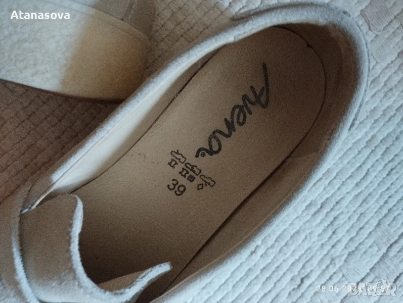 Продавам маркови обувки на платформа естествен велур и каучук подметка цвят бежов. Изключително удобни за проблемни крака. Обувани са три пъти за по час.