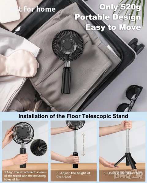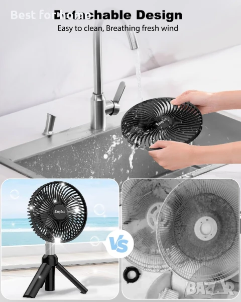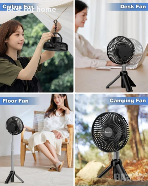 【5 в 1 Многофункционален вентилатор с капацитет 5000】Искате ли вентилатор, който може да се използва както на закрито, така и на открито? EasyAcc 5 в 1 настолен вентилатор. Със своя уникален дизайн и функции, той може да бъде настолен вентилатор, къмпинг вентилатор, подов вентилатор или осцилиращ вентилатор. ① Това е настолен вентилатор и подов вентилатор за офиси, домове, кабинети и спални. ②