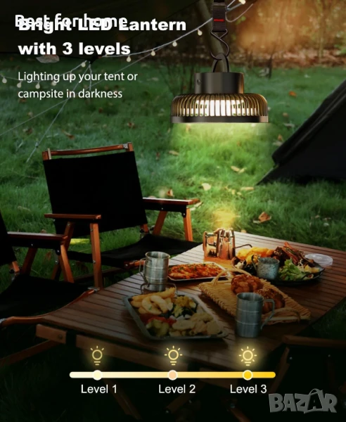 【Ярка LED светлина】Вентилаторът за палатка с LED светлина има 3 нива на яркост (Супер ярка, Силна, Топла), като режимите на вентилатор и осветление могат да се използват едновременно или поотделно. Този подобрен мини преносим вентилатор комбинира вентилатор за палатка, къмпинг лампа и триъгълен вентилатор на пиедестал, за да циркулира въздуха равномерно и да осветява палатката или къмпинга ви в тъмното.