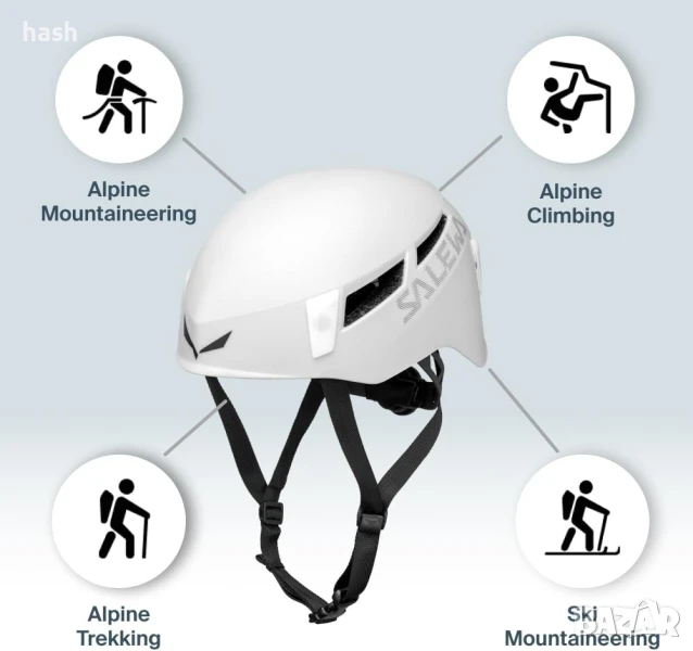 - Универсална и здрава каска с твърда черупка за всички алпийски приключения.