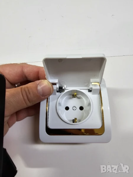 Единичен контакт с капак за стенен монтаж 16 ампера със златни кантове, снимка 1 - Друга електроника - 50828754 Единичен контакт с капак за стенен монтаж 16 ампера със златни кантове, снимка 2 - Друга електроника - 50828754 1/2