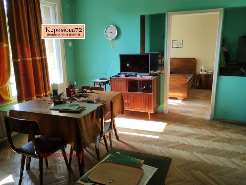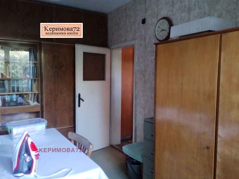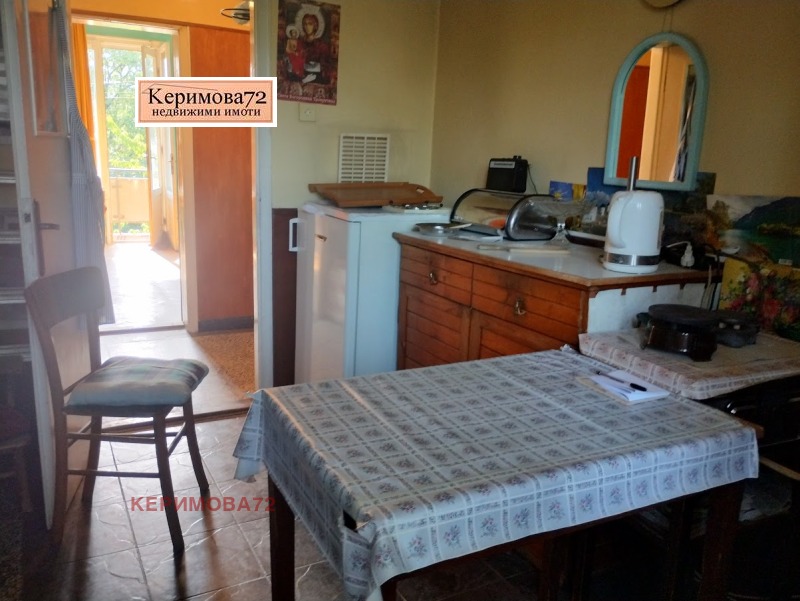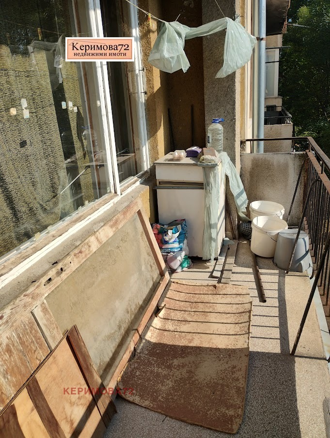 Апартаментът се състои от:самостоятелна кухня, хол с преход към спалня, самостоятелна спалня, баня, тоалетна, балкон пред хола и още един пред кухнята-остъклен.Настилката е паркет, стените-латекс.Частично сменена дограма и външна изолация на кухнята и самостоятелната спалня.