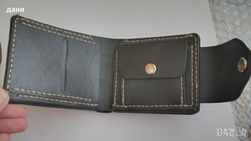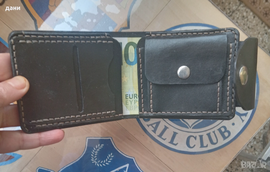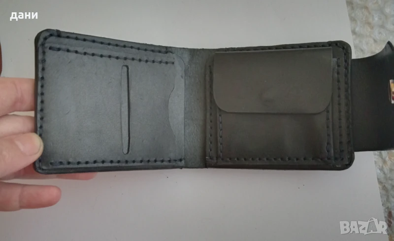 Портфейлът е ръчна изработка от естествена телешка кожа. Компактен и събиращ доста неща !