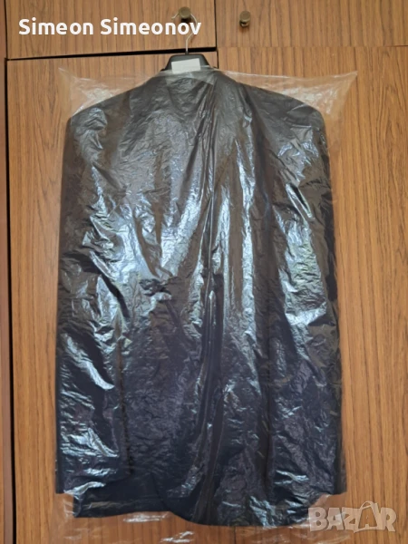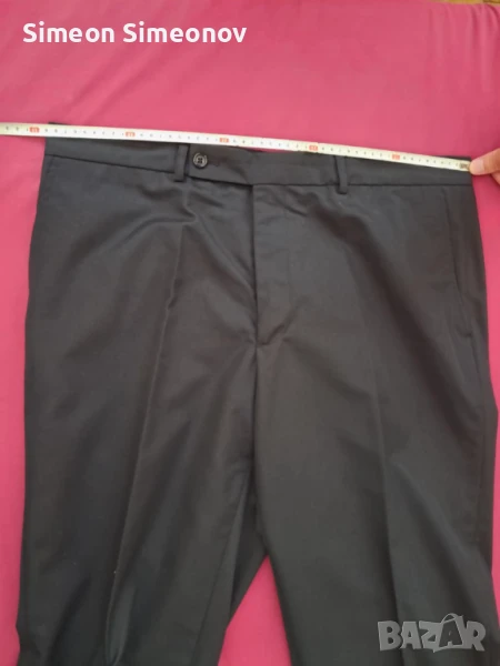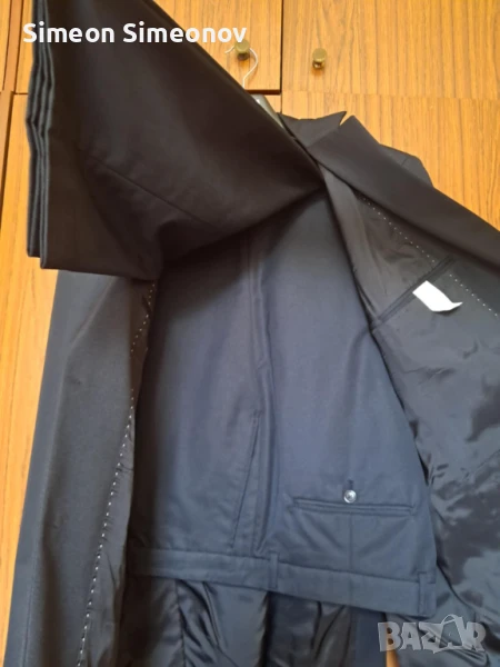 Костюма е нов,не е обличан.Имам същия,само,че е тъмно сив.Ширина на панталона на талията в сгънато положение 51см.,дължина на панталона 110см.,дължина на ръкава на сакото 67см.Имам и използвани костюми на ниски цени за всякакви случаи.Цената се договаря.