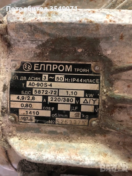 Ел.двигател(мотор).Втората снимка е табелката с характеристиките .Пращам по Еконт и Спиди .