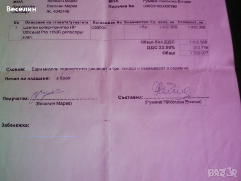 Цветно мултифункционално у-во 3 в 1, принтер, скенер и копир, HEWLETT PAKARD Offisejet Pro 1150C, закупено от Стемо Бургас, за 1700лв , 1997г. използвано по малко от година в домашни условия, не е използван от много години и мастилата вероятно са изсъхнали и трябва да се подменят