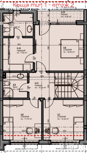 Показаните разпределения са на 2 от къщите, другите 2 са огледални!