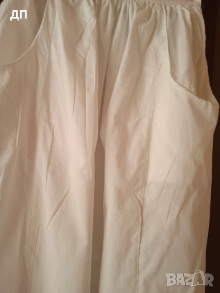 НОВА БЯЛА ДЪЛГА ПОЛА Производство Индия.100 процента памук. Размер L XL. Коланът отзад е на ластик. Цена 25 лева. Изпращам с Еконт или Спиди.За Пловдив може лично предаване.